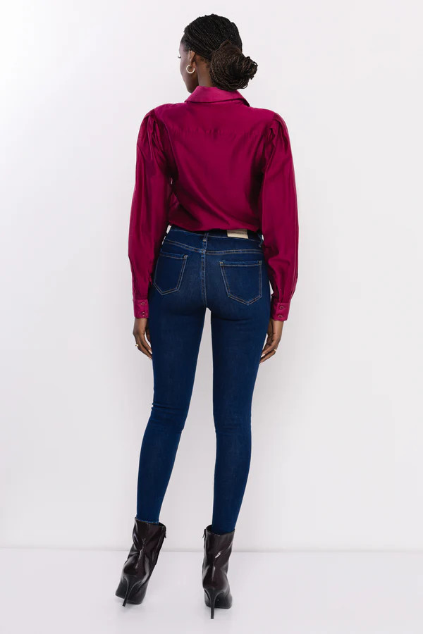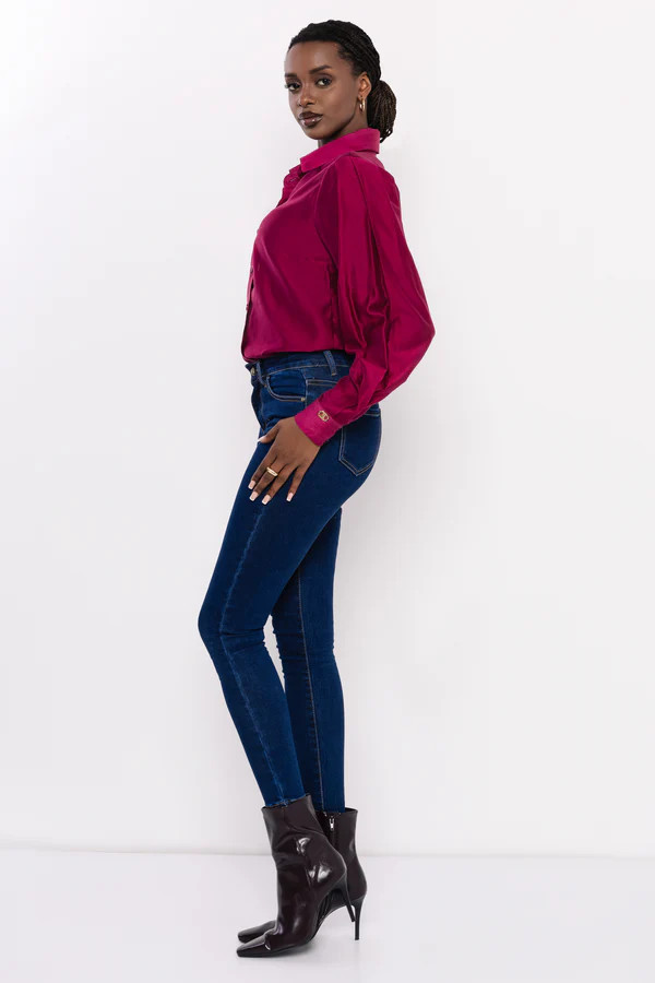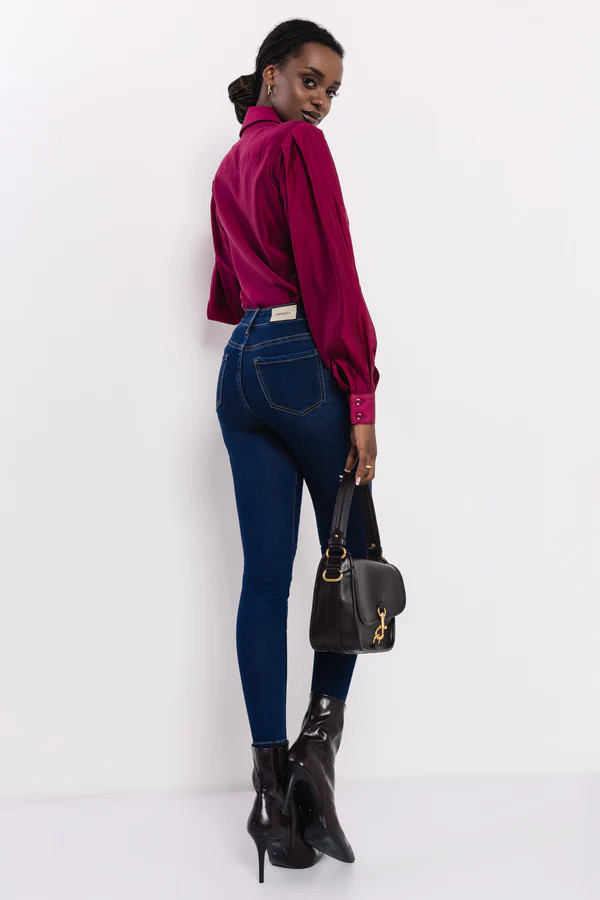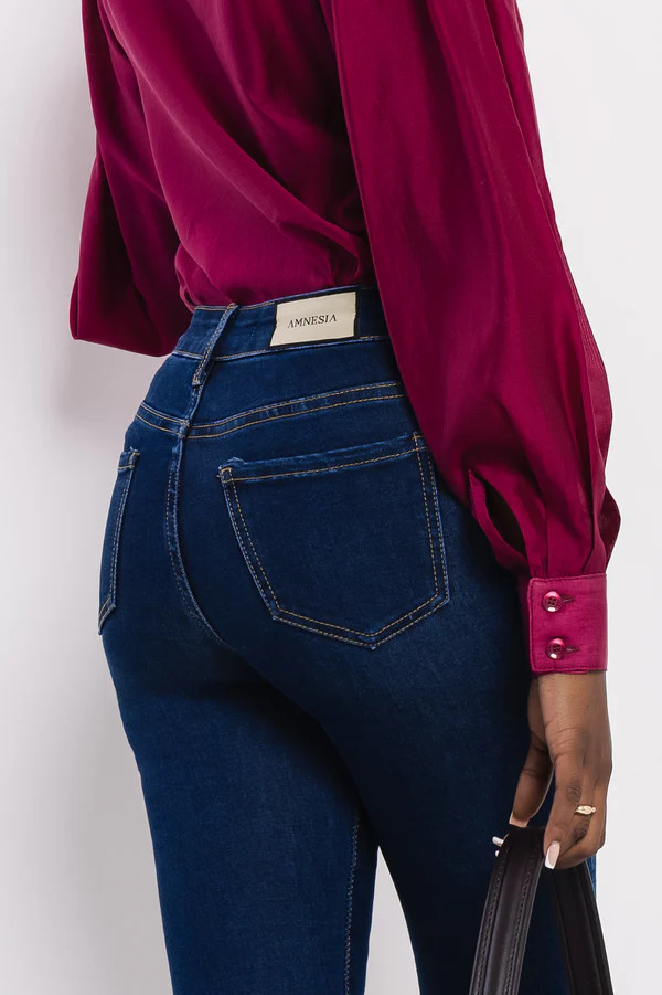 Az AMNESIA Fontana indigókék farmer a klasszikus női gardrób egyik alapdarabja, modern részletekkel. Középmagas derekú, testhez simuló szabása kiemeli az alakot, miközben az elasztán tartalmának köszönhetően kényelmes viselet egész napra. Anyaga puha, rugalmas farmer, amely hosszú távon is megőrzi formáját, a sötét indigó árnyalat pedig elegáns, letisztult megjelenést kölcsönöz.