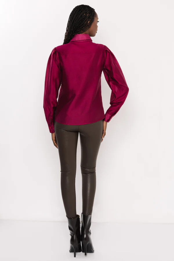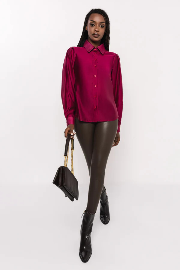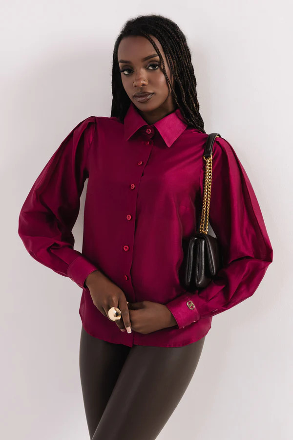 Az AMNESIA Rikarda blúz tökéletes választás, ha nőies, karakteres megjelenést szeretnél. A klasszikus inggallér és az enyhén puffos ujjak különleges karaktert adnak ennek a modern darabnak, miközben a ragyogó bordó árnyalat azonnal magára vonja a tekintetet. Kifinomult, mégis trendi választás a hétköznapokban és alkalmakra is.