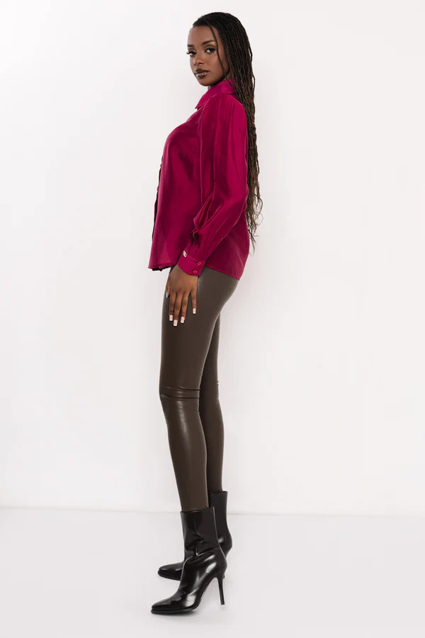 Viseld bőrhatású nadrággal egy karakteres, esti megjelenéshez, vagy párosítsd szövetszoknyával, ha elegáns, irodai szettet szeretnél.