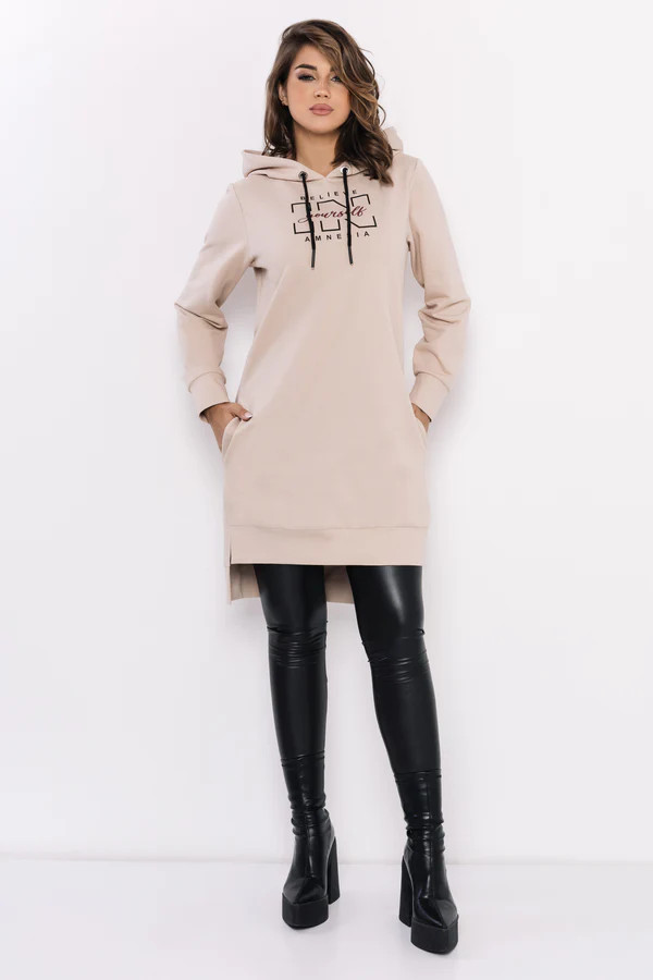 Az AMNESIA Csőre 2 tunika sportos, mégis nőies fazonjával a lezser elegancia megtestesítője. Klasszikus, enyhén A-vonalú szabása, hosszított háta és oldalhasítékai kényelmet biztosítanak, míg a kapucni és a logónyomás modern, karakteres részletként teszi teljessé az összhatást.