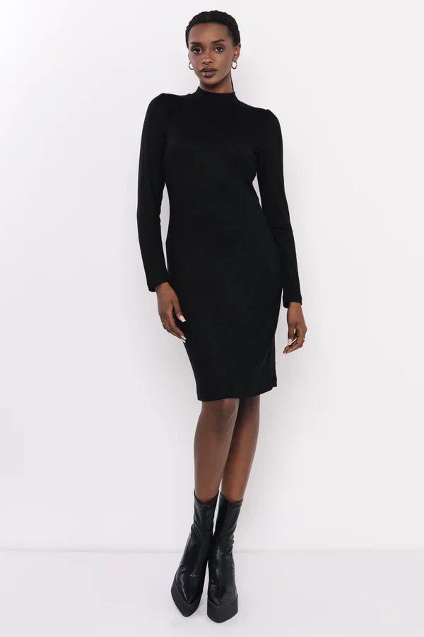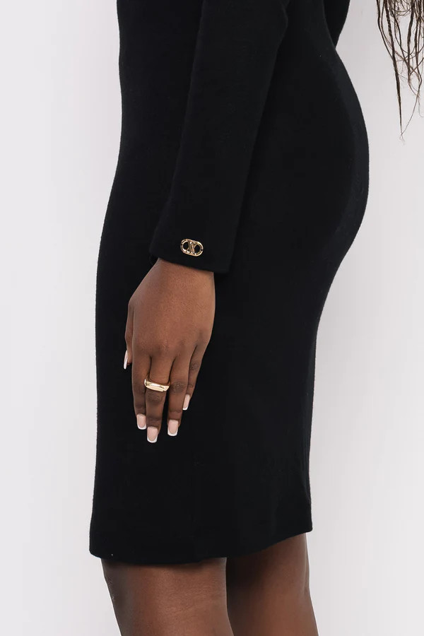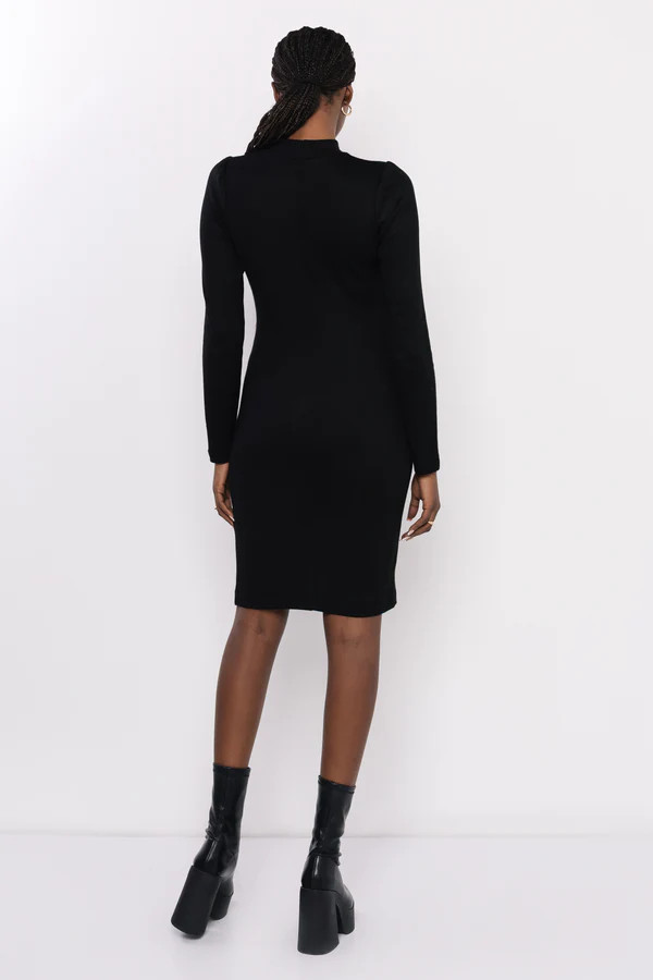 Az AMNESIA Uzona ruha a letisztult nőies stílus tökéletes alapja. Kellemes tapintású, puha kötött anyagból készült, amely szépen követi a test vonalait, miközben finoman kiemeli az alakot. Állógallérja eleganciát ad a fazonnak, az ujjak végén található, apró fém AMNESIA-logó pedig stílusos részlet, ami különlegessé teszi ezt az alapdarabot.