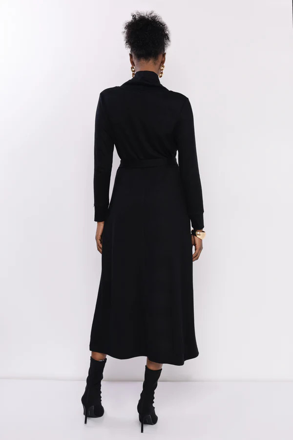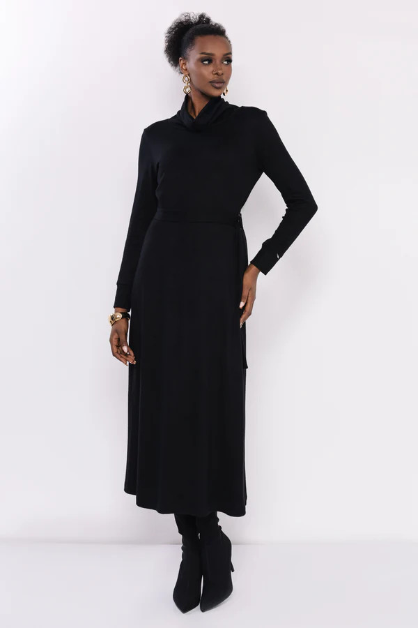 Az AMNESIA Enka ruha modern és elegáns megjelenést biztosít minden alkalomra. Vékony, puha kötött anyaga finoman simul a testhez, miközben a magasított nyakrész és a derékpánttal ellátott, karcsúsított fazon nőies sziluettet formál. A maxi hossza letisztult eleganciát kölcsönöz, a visszafogott részletek pedig időtlen stílust teremtenek.
