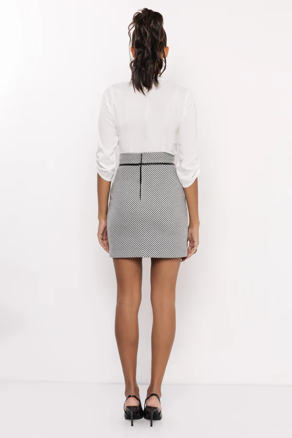 Az AMNESIA Kori szoknya elegáns alapdarab, amelyet letisztult szabásvonalai és nőies vonalvezetése tesz igazán különlegessé. A derékban szűkített fazon kiemeli az alakot, ennek ellenére kényelmes viseletet is biztosít a mindennapokban. A fekete és a szürke-fekete csíkos változat tökéletes választás irodai megjelenéshez és alkalmi outfitekhez egyaránt.