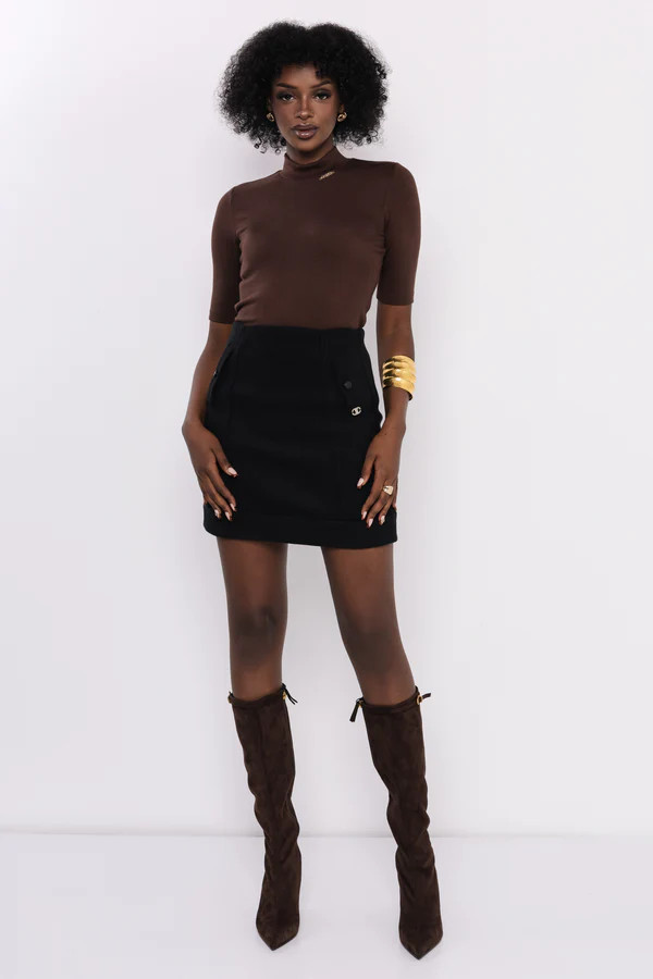 A fazon enyhén karcsúsított, így szépen formálja az alakot, a rövidebb szabás pedig optikailag hosszabbítja a lábat. Párosíthatod garbóval és bokacsizmával, de zakóval viselve akár irodai szettként is megállja a helyét.