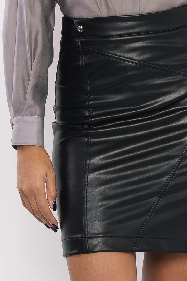 Az AMNESIA Aurora szoknya a modern nő gardróbjának alapdarabja. A lágy fényű műbőr és a karcsúsított, rövid fazon tökéletesen formálja az alakot. Az aszimmetrikus varrásvonalak és a derékrész precíz kialakítása különleges, mégis letisztult megjelenést adnak, amely minden alkalommal magabiztosságot sugároz.