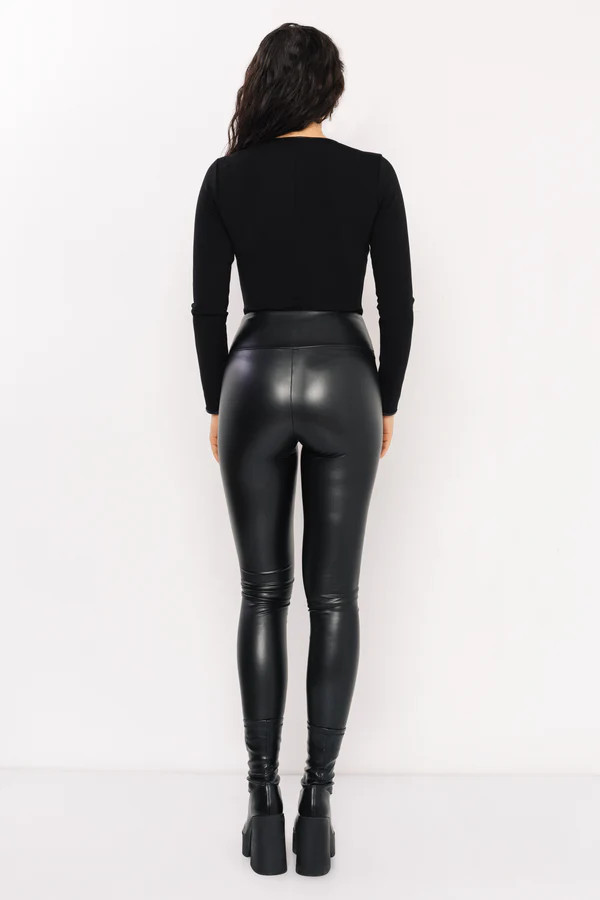 AMNESIA 2527-6010 Vica bőrhatású leggings (fekete)