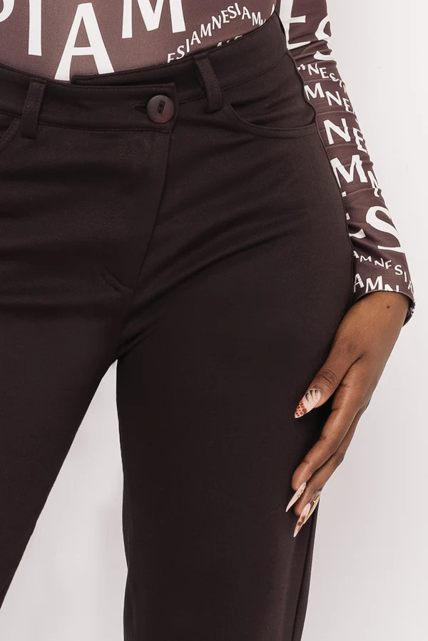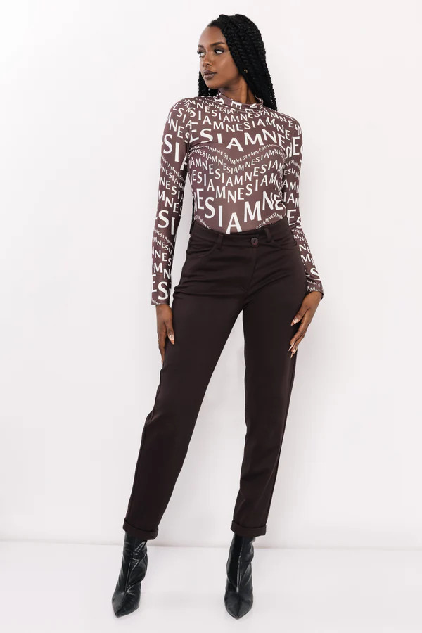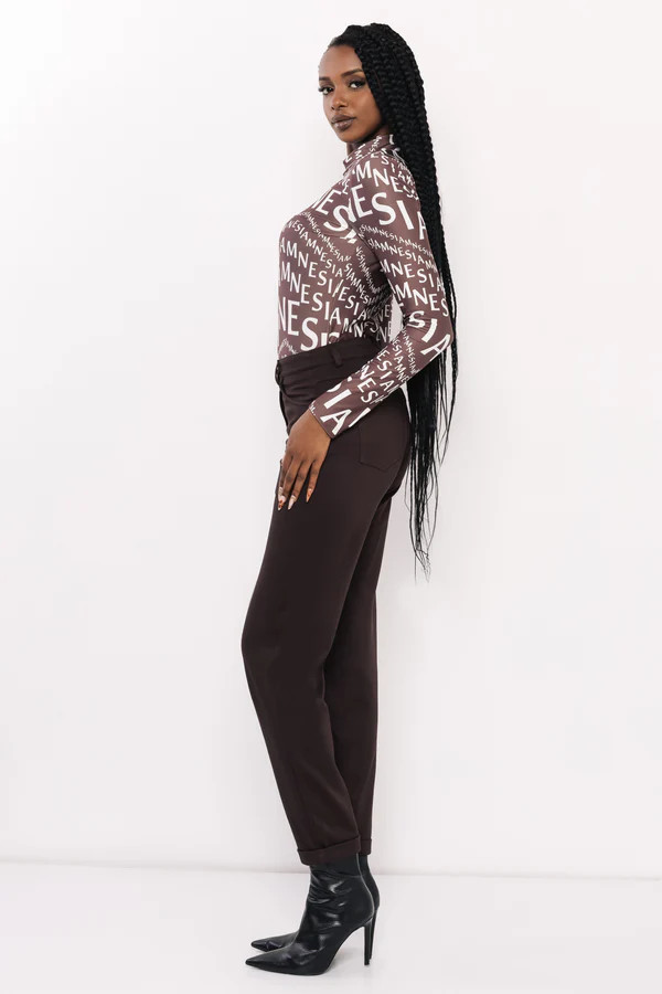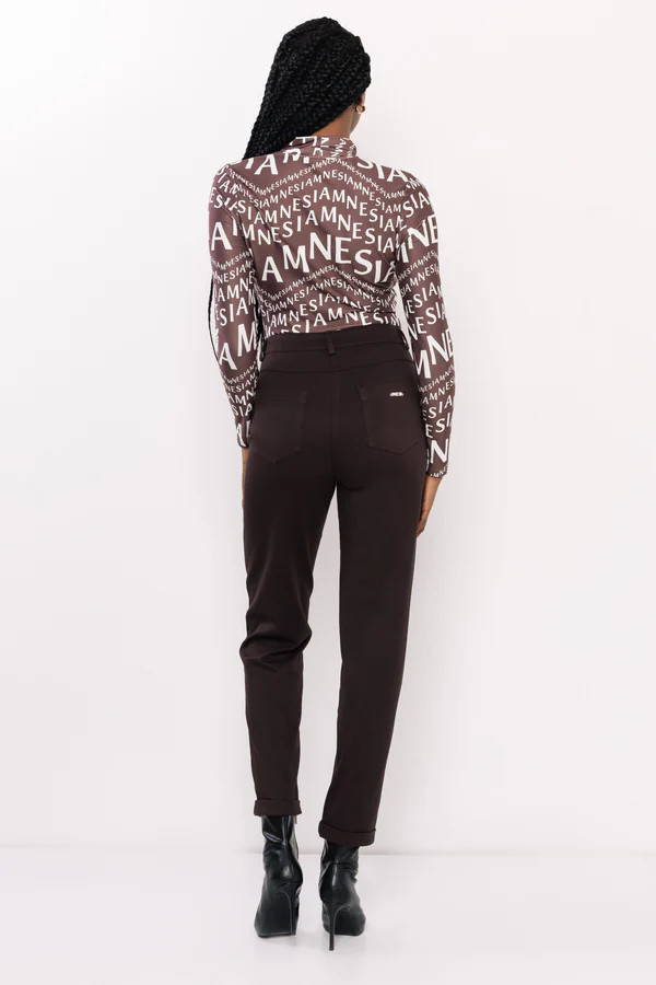 A fekete és csokibarna árnyalat klasszikus alapdarabbá teszi, amely jól kombinálható a kollekció logómintás felsőivel – például az AMNESIA Dini garbóval vagy az AMNESIA hosszú ujjú pólóval. Viseld magassarkú bokacsizmával a nőies megjelenésért, vagy sportcipővel egy laza, hétköznapi stílushoz.
