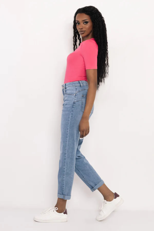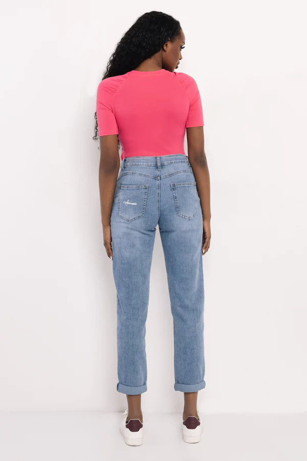 Az AMNESIA Joker farmernadrág egy nőies szabású, mégis komfortos darab, amely tökéletesen illeszkedik a mindennapi szettekhez. A klasszikus fazont a signature részletek és a jól eltalált koptatás teszi igazán trendivé.