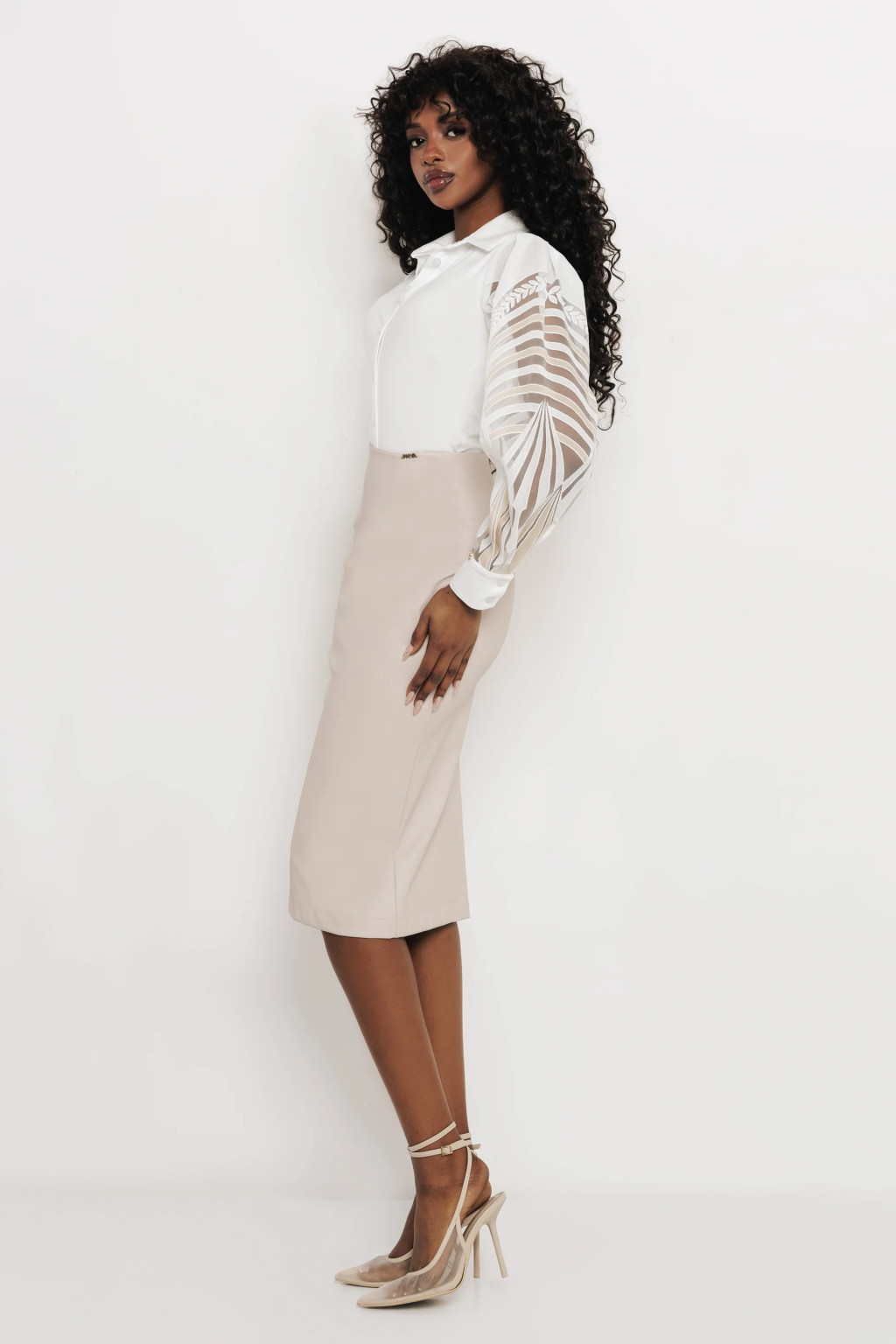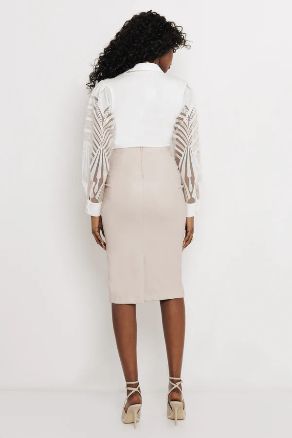 Az AMNESIA Gvinet ing letisztult megjelenésével és ekrü színével elegáns alapdarab a tavaszi AMNESIA kollekcióban. Finom részletei és klasszikus vonalvezetése miatt könnyen beilleszthető az üzleti és alkalmi szettekbe is. Olyan ing, amely kifinomult megjelenést biztosít, miközben határozott karaktert ad az összhatásnak.