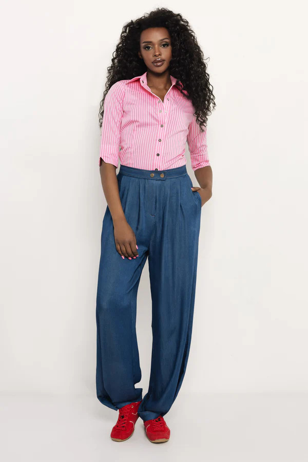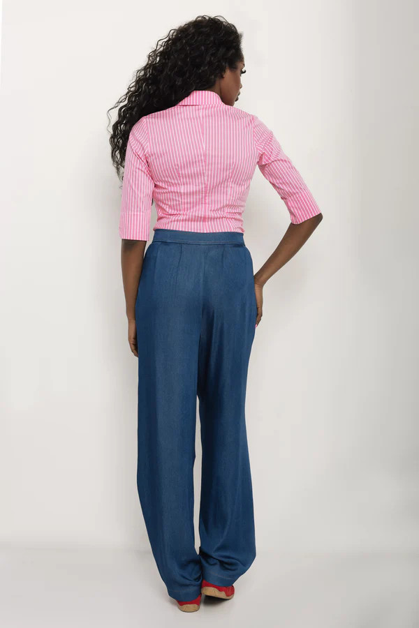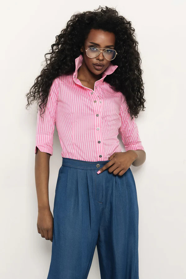 Puplin anyagból készült, amely finom, könnyű és jól tartja a formáját. A 3/4-es ujj és a csíkos minta friss, letisztult megjelenést ad, így könnyen beilleszthető elegáns és hétköznapi szettekbe is. Rózsaszín csíkos, kék csíkos és bézs színben érhető el, S, M, L és XL méretben, hogy megtaláld a számodra legjobbat.