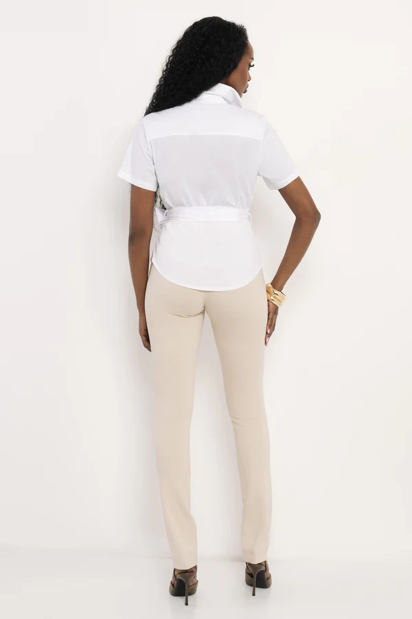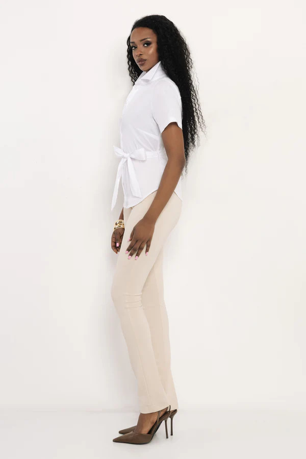 Az AMNESIA Nozin blúz egy nőies, könnyen kombinálható darab, amely a klasszikus ingfazont friss, modern részletekkel egészíti ki. A deréknál megköthető pánt kiemeli az alakot, miközben játékosságot visz a megjelenésbe.