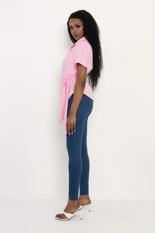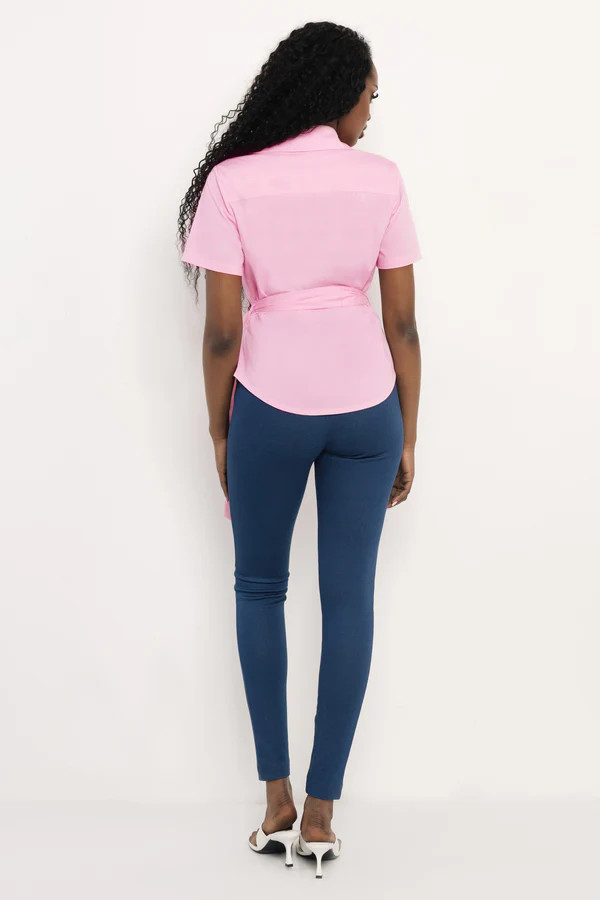 Viseld magas derekú nadrággal vagy szoknyával egy nőies, kiegyensúlyozott outfithez, különösen jól mutat az AMNESIA Galilei leggings darabbal párosítva.