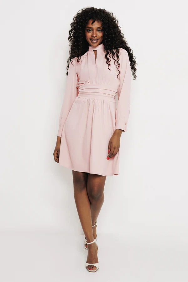 Az AMNESIA Ciano ruha egy könnyed, nőies darab, ami akkor is jól működik, ha csak gyorsan felkapnál valami csinosat. A magas nyakú megoldás és az elöl nyitott kis kivágás finom részlet, a derékrésznél kialakított széles pánt pedig szépen formálja a sziluettet. A szoknyarész lágy esése mozgás közben is szépen mutat, ezért nappalra és alkalomra is jó választás.