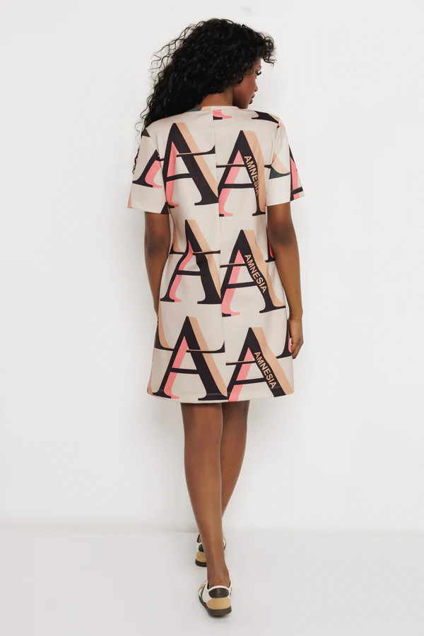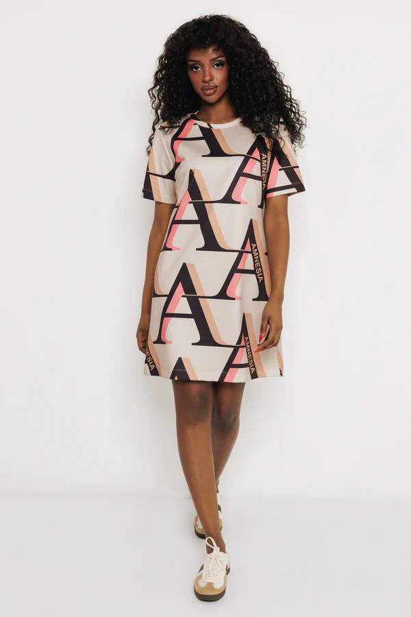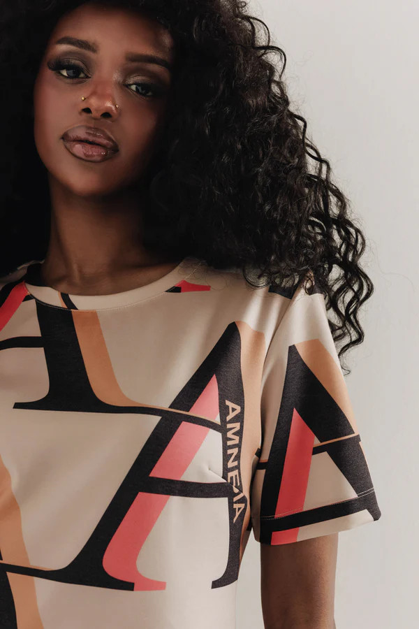 Az AMNESIA Deli ruha egy karakteres, mégis könnyen viselhető darab, amely látványos AMNESIA mintájával azonnal feldobja a megjelenésed. A rövid ujj és a sportos fazon nőies, mégis kényelmes megjelenést ad, így nappali programra és lazább alkalmakra is jó választás.