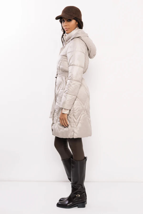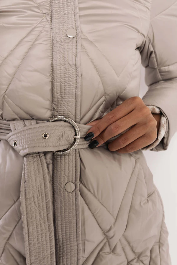 Az AMNESIA Léna rombusz steppelt kabát a hideg napok igazi kedvence: hosszított, öves fazonja és a steppelt mintázata egyszerre nőies és praktikus. A kapucni, a díszített övcsat és a puha, meleg bélés minden részletében a kényelmet és az eleganciát szolgálja.