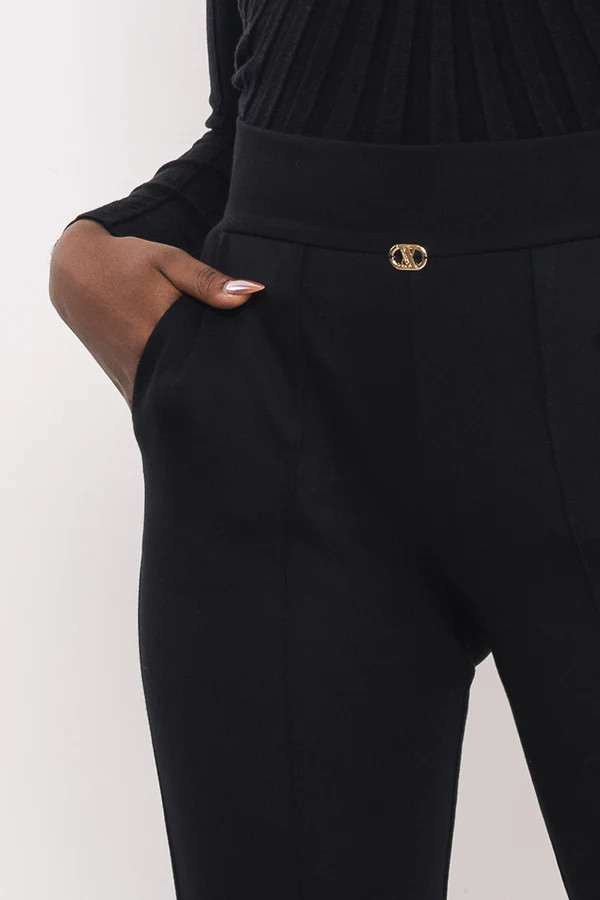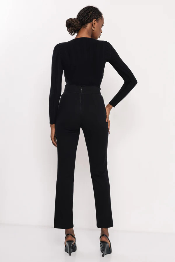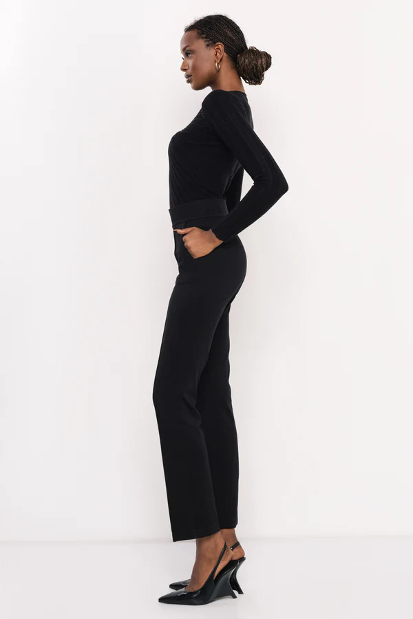 Az AMNESIA Veneto nadrág magasított derékrésszel és karcsúsított szabásvonallal készül, amely optikailag nyújtja az alakot és elegáns tartást ad. A punto anyag rugalmassága biztosítja, hogy a nadrág egész nap komfortos viselet legyen, miközben formálja és kiemeli a nőies vonalakat. A vasalt él hatású díszvarrás letisztult, klasszikus karaktert kölcsönöz, amely bármilyen stílusban megállja a helyét.